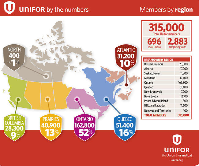 Unifor members work in nearly every sector of the economy. We have members who work in health care, telecommunications and media, in road, rail, air and marine transportation, in resources such as forestry, energy, mining and smelting and fisheries. We have members in construction, manufacturing, auto, and shipbuilding. We also have members who work in, education, retail, gaming and hospitality.
